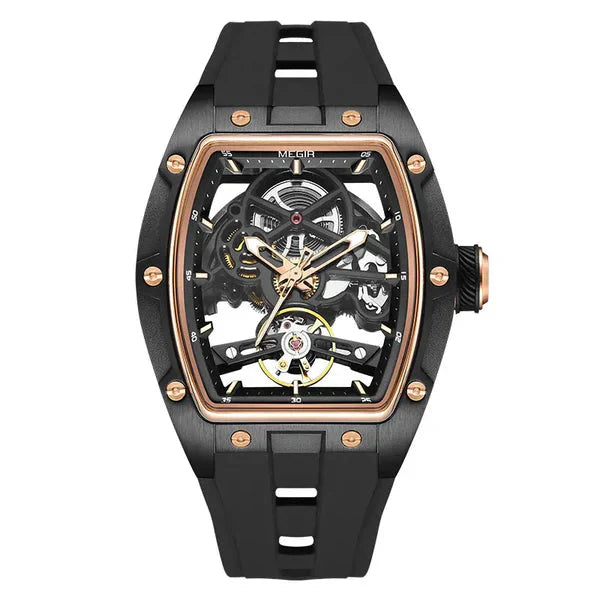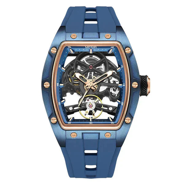 Inspiriert vom manuellen Getriebe: Entwickelt für alle, die die Technik und Präzision eines manuellen Getriebes zu schätzen wissen. Das offen gestaltete Zifferblatt gibt den Blick frei auf die faszinierende Mechanik im Inneren – ganz wie bei einem echten Getriebe.